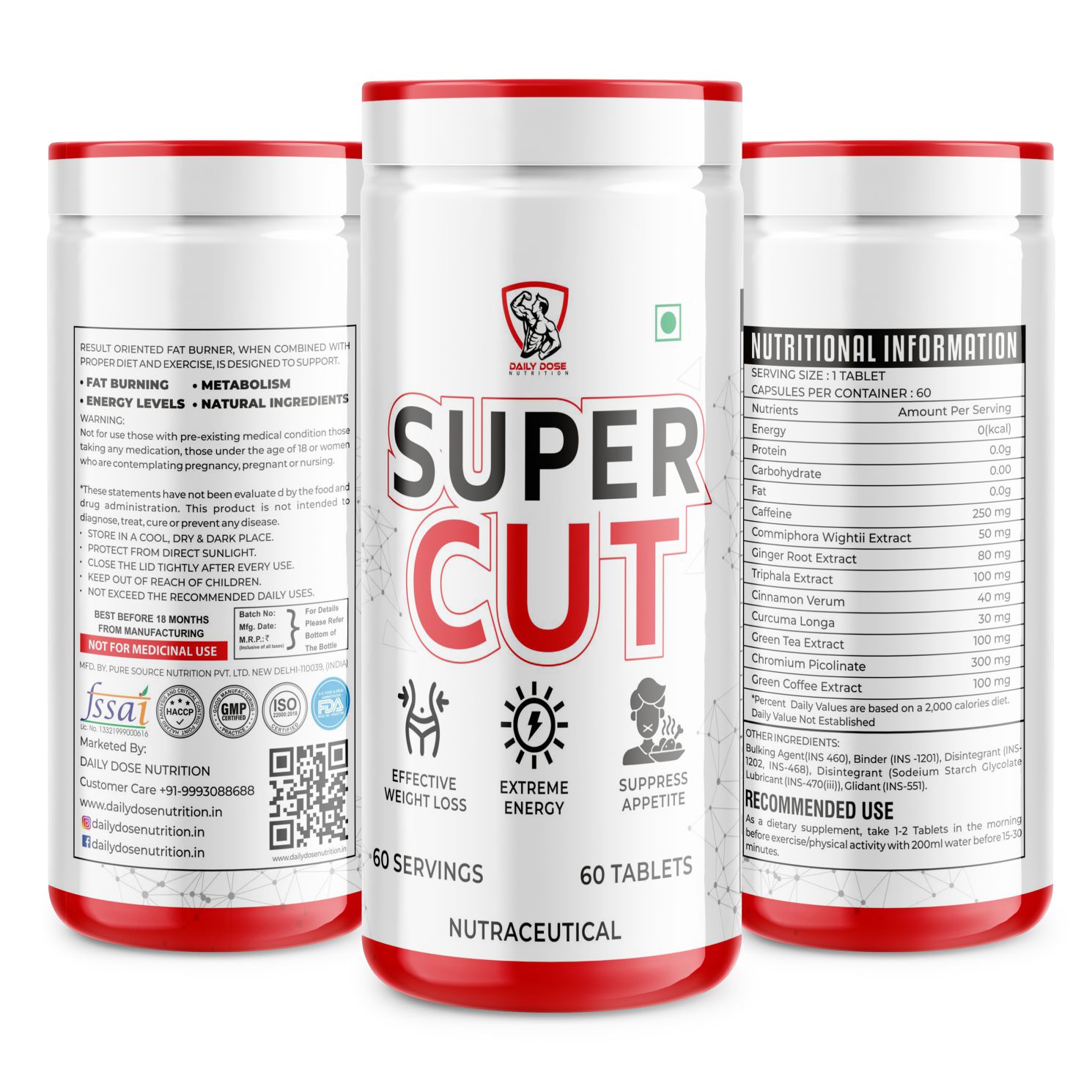 Super Cut Fat Burner is formulated for those who wants to work towards a healthier body. Core ingredients include Green Tea, Green Coffee and Triphala. Super Cut ensures the originality of the ingredients in order to provide satisfaction to the customers. Fat burners are known for breaking up the fat cells and removes toxins. Super Thermogenesis helps to increase heat through metabolic stimulation. When metabolism rates rises heat generate in body & also increase energy to promote breakdown of fat cells.
