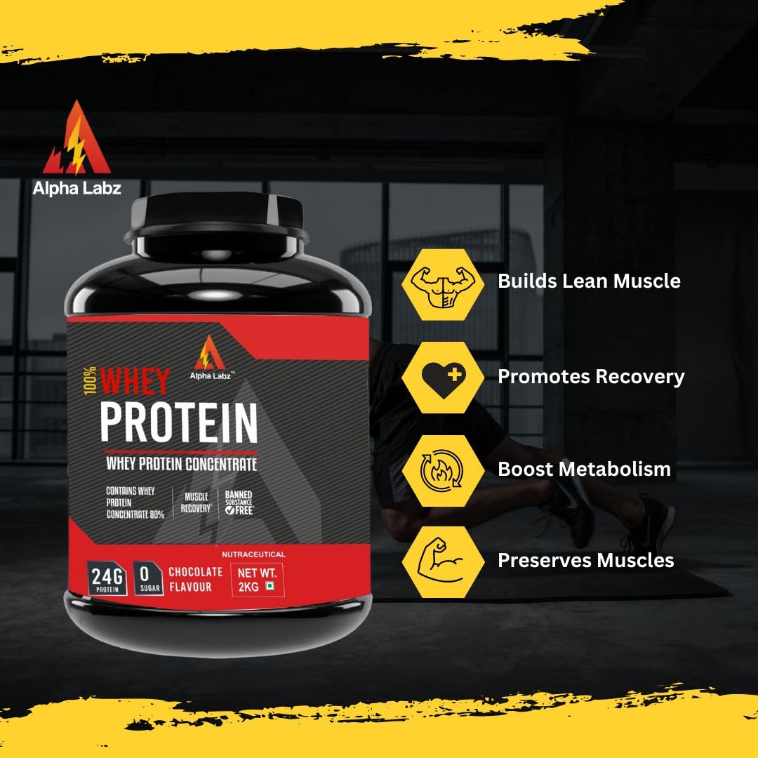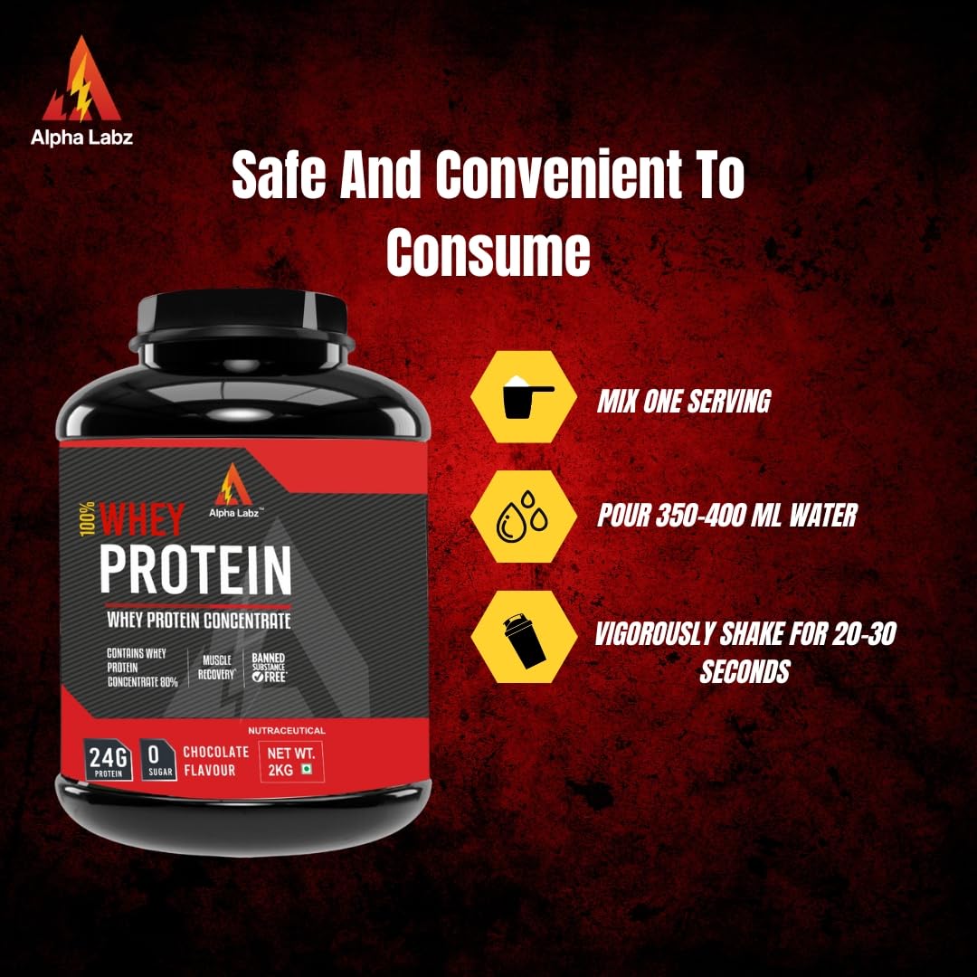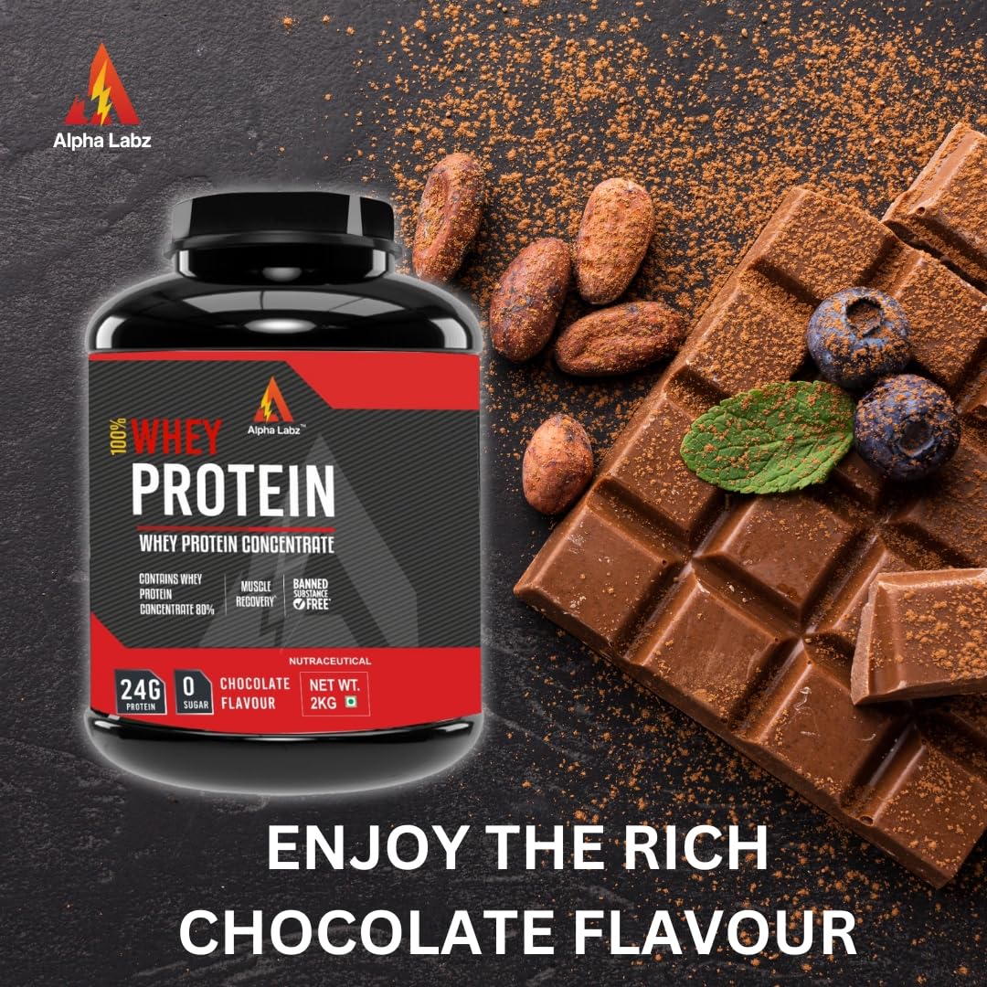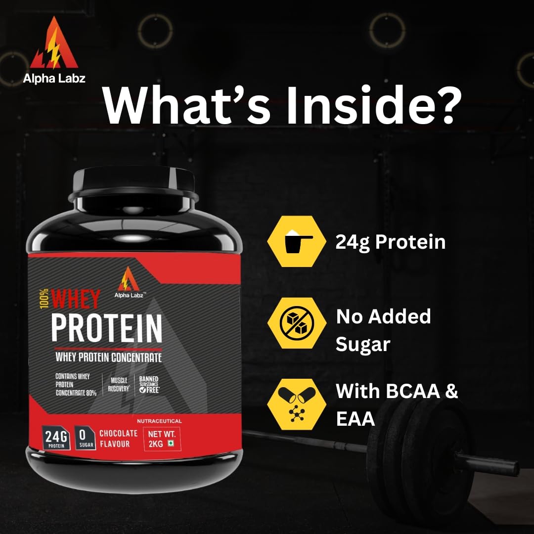 - Alpha Labz 100% WHEY PROTEIN is 100% Imported Whey Protein Isolate supplement powder and delivers 24g of protein, 2.3g BCAAs & 1.7g Glutamine per serving