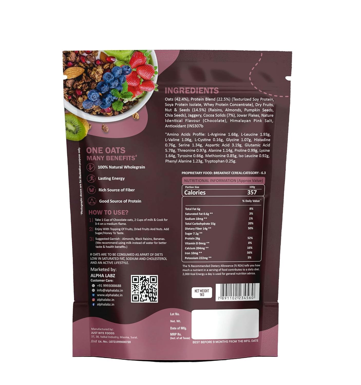 Alpha Labz High Protein Oats 1kg + Alpha Labz High Protein Peaunt Butter + Alpha Labz Muesli