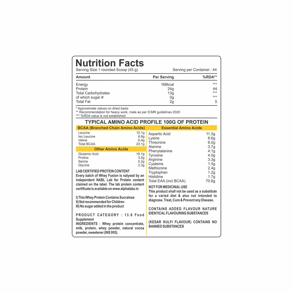 - Alpha Labz WHEY PROTEIN is 100% Imported Whey Protein Isolate supplement powder and delivers 24g of protein, 5.5g BCAAs per serving