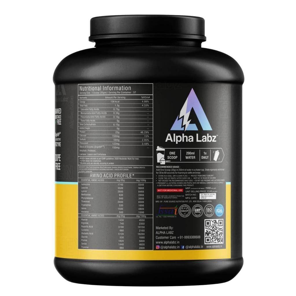 - Alpha Labz WHEY PROTEIN is 100% Imported Whey Protein Isolate supplement powder and delivers 25g of protein, 6.7g BCAAs & 15.5g EAA per serving