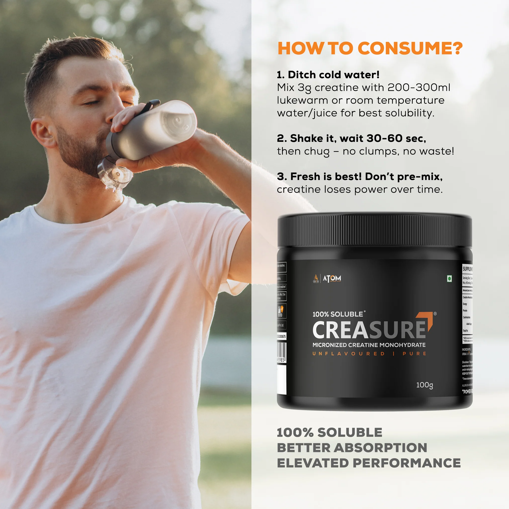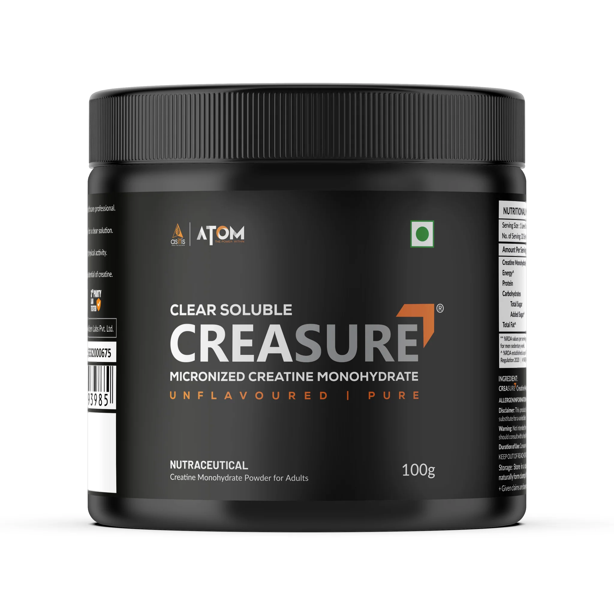 AS-IT-IS ATOM Creasure® Clear Soluble Creatine Monohydrate, Micronised & Unflavored, Fast Recovery, Rapid Absorption, Supports Lean Muscle Growth