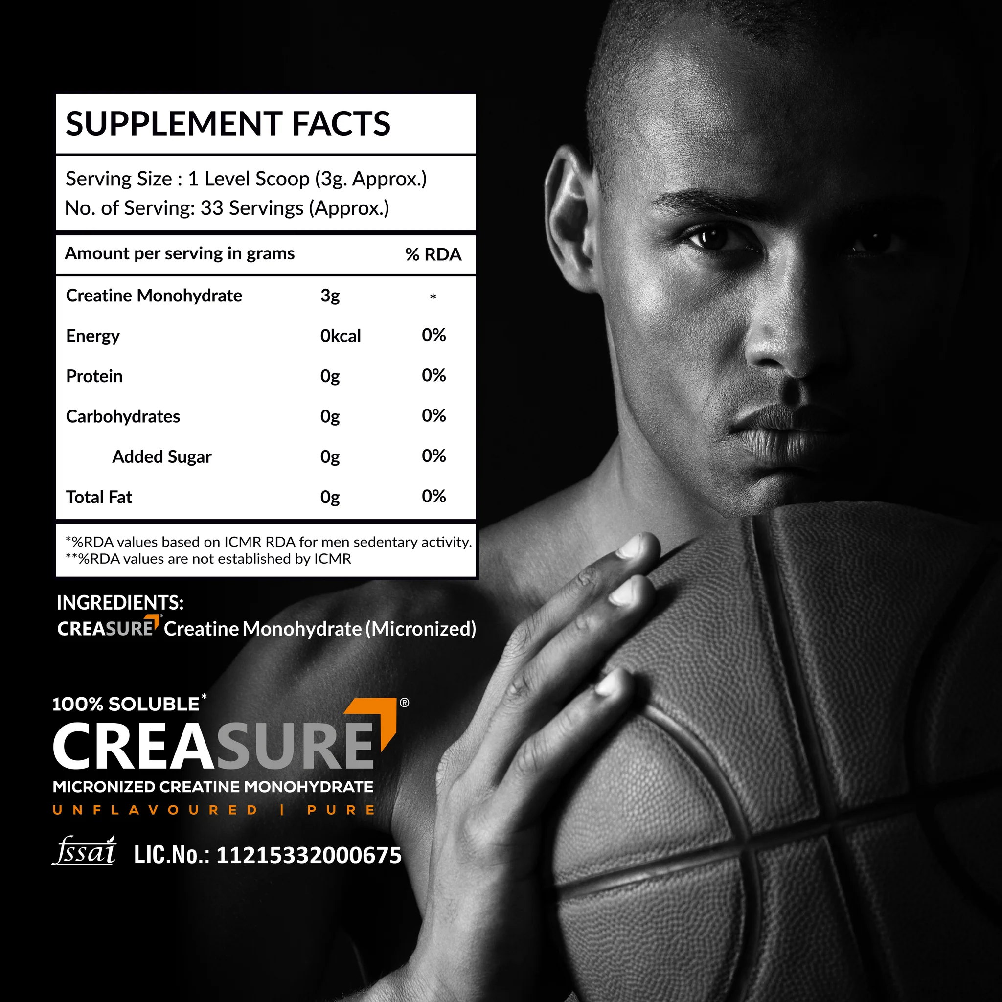 • ABSORBS RAPIDLY: Why wait? The rapid absorption of 100% water-soluble Creasure kicks in quickly, giving straight-up power. Creasure fuels ATP generation like a boss, keeping your endurance on max so you can push harder, smash through reps, and avoid early crashes.