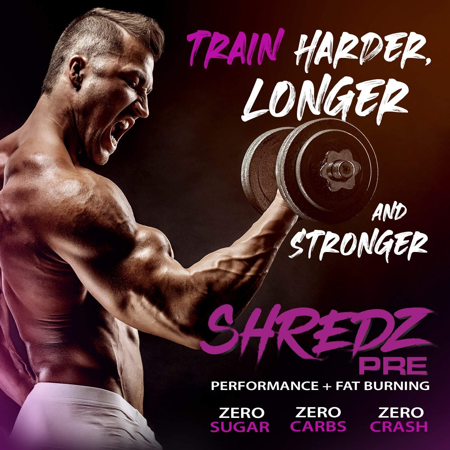 • Shredz Pre is engineered to provide a perfect balance of Endurance, Strength, Focus, Fat Burn and Energy; Shredz Pre provides you the aid required to increase strength and muscles pumps allowing you to lift heavier, run further faster and surpass your regular physical performance