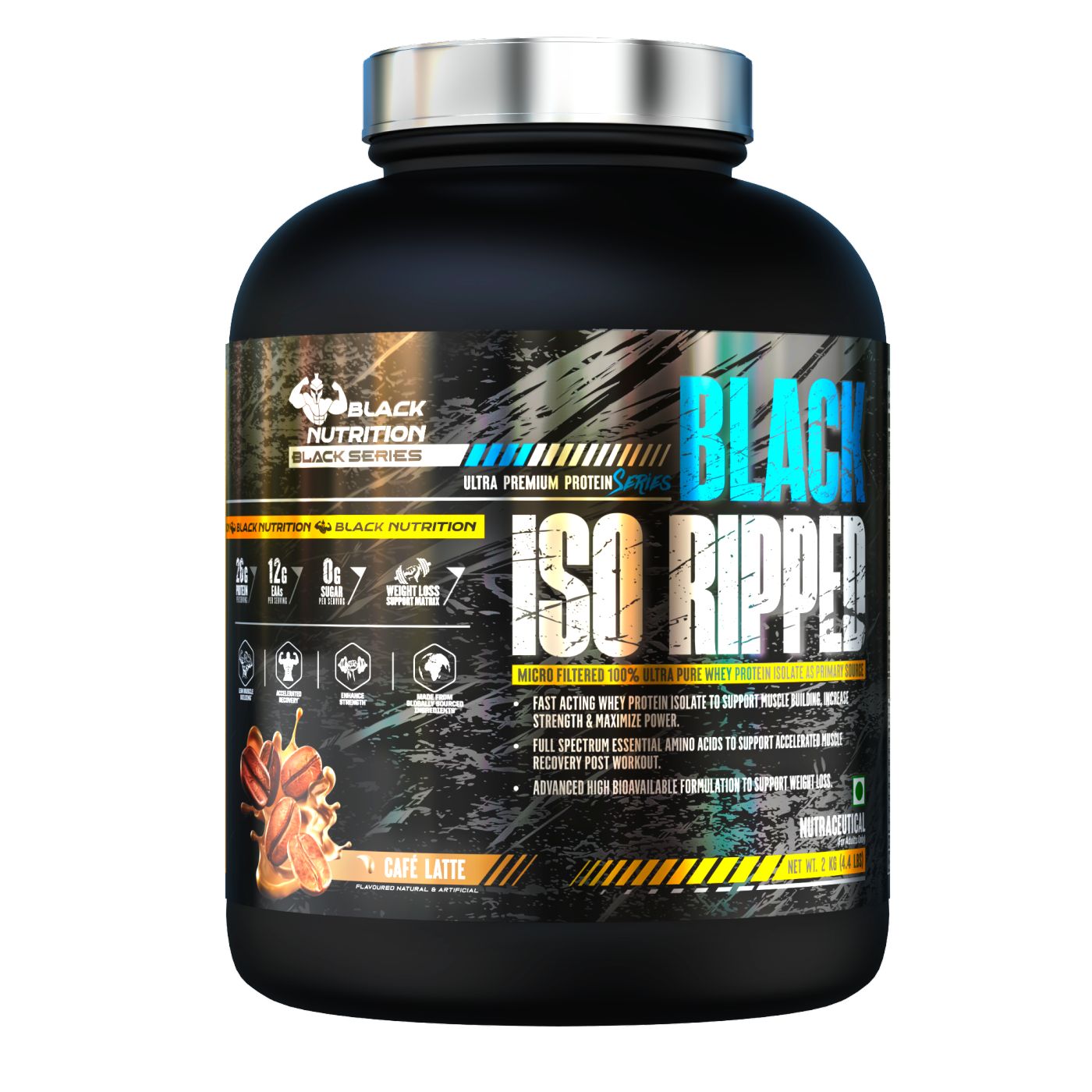 - Black ISO RIPPED is an exceptional weight-loss protein made from 100% pure whey isolate. Rich in essential amino acids, it can help in lean muscle building and muscle recovery. It is naturally low in calories, carbs.