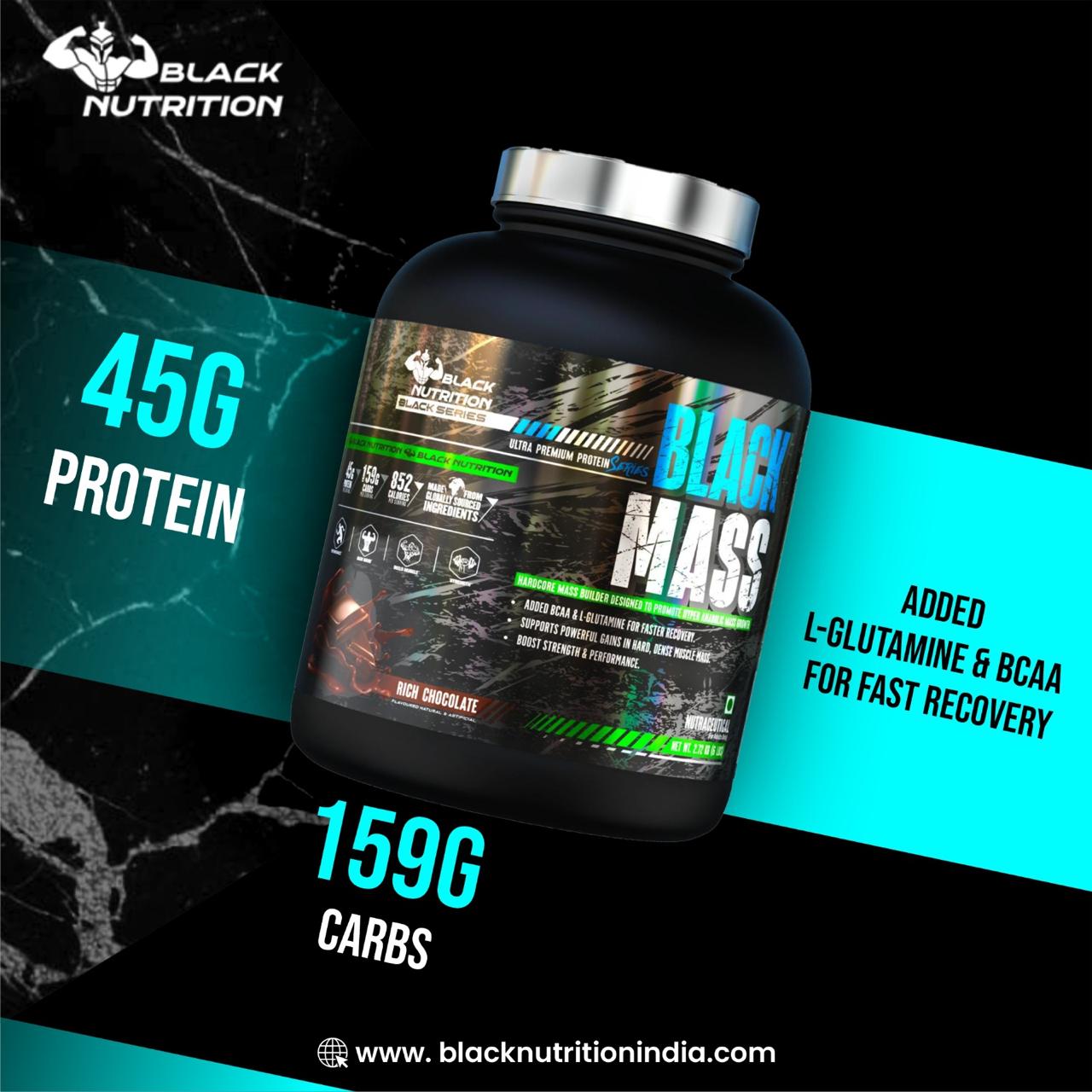 Hyper Mass Gainer is perfect for “hard gainers,” — those are the athletes who find it hard, or next to impossible, to gain weight. It is a high-calorie bodybuilding shake fortified with muscle building protein, carbohydrates, creatine monohydrate and essential nutrients. Hyper Mass Gainer makes it easy for you to get lots of calories and the highest quality muscle-building protein for gaining weight fast, in one delicious shake. Hyper mass gainer can be used as a Post-Workout drink. It’s high-calorie body building food with muscle building protein, carbohydrates, creatine and taurine. Black Mass Gainer is Crucial in helping the body support muscle recovery from hardcore training as well as promote muscle growth. Use in the morning, between major meals or post-workout.