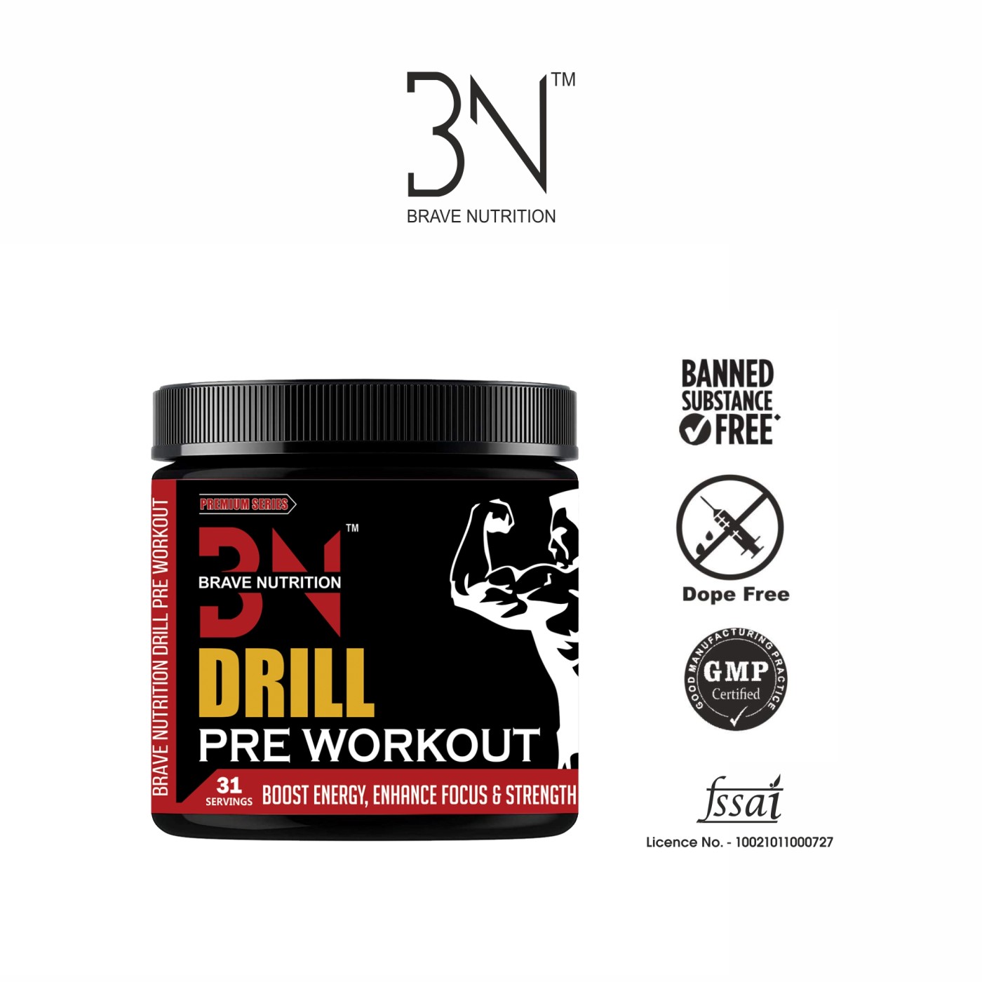 The Brave Nutrition Drill Pre-workout : Designed to elevate your energy, focus, power output, and performance levels, it will help you power through every training session and prime you for harder, heavier, and more productive lifts. With so many ingredients dedicated to powering up your results, The Brave Nutrition Pre-workout is in a league of its own. Stop leaving gains on the table. Start making the most of your workouts today with The Brave Nutrition Pre-workout, the lifting partner you’ve been looking for. Serving: For Insane Workout – Take One Scoop with 150-200ml of water and drink 10-20 minutes before action. For Hardcore Workout – Take half Scoop with 150-200ml of water and drink 10-20 minutes before action.