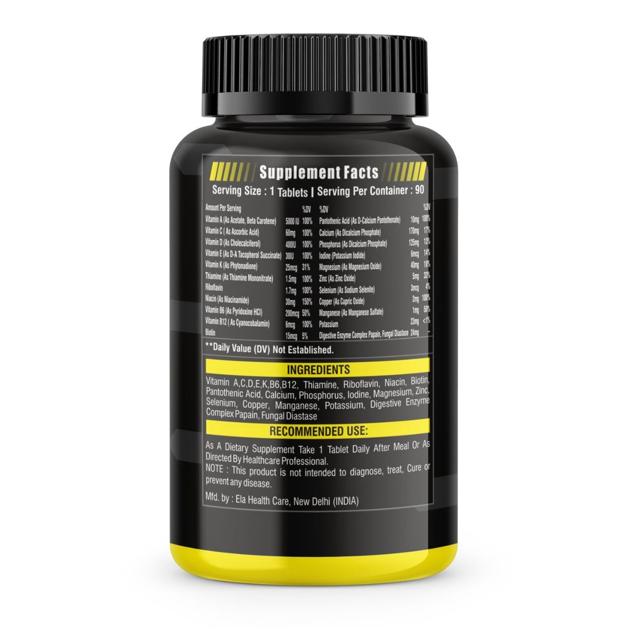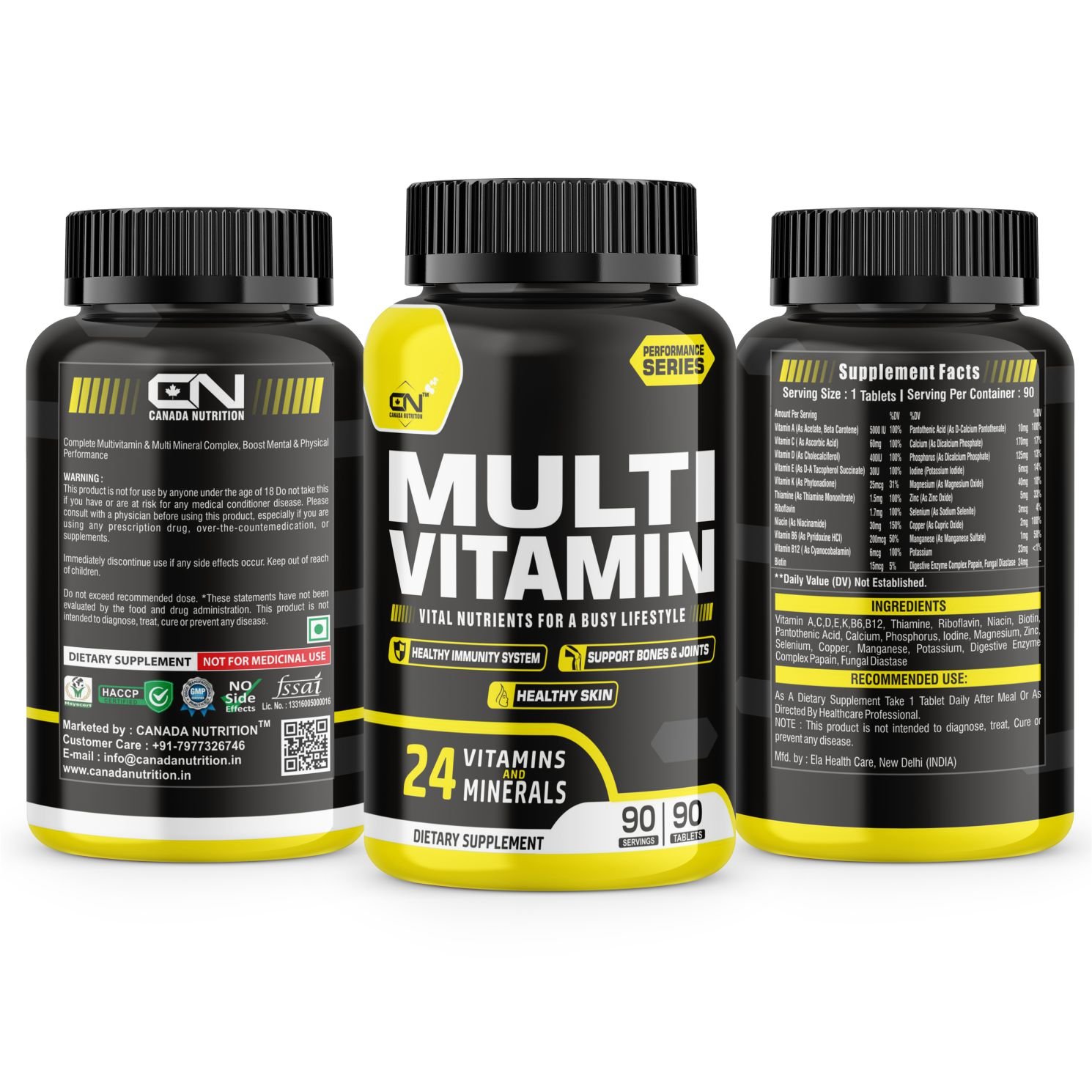 Canada Nutrition Multi Vitamin provides 100% RDA of all Vitamins along with minerals. It helps improve your energy and stamina levels, fulfilling micronutrient deficiencies and supports various metabolic processes.