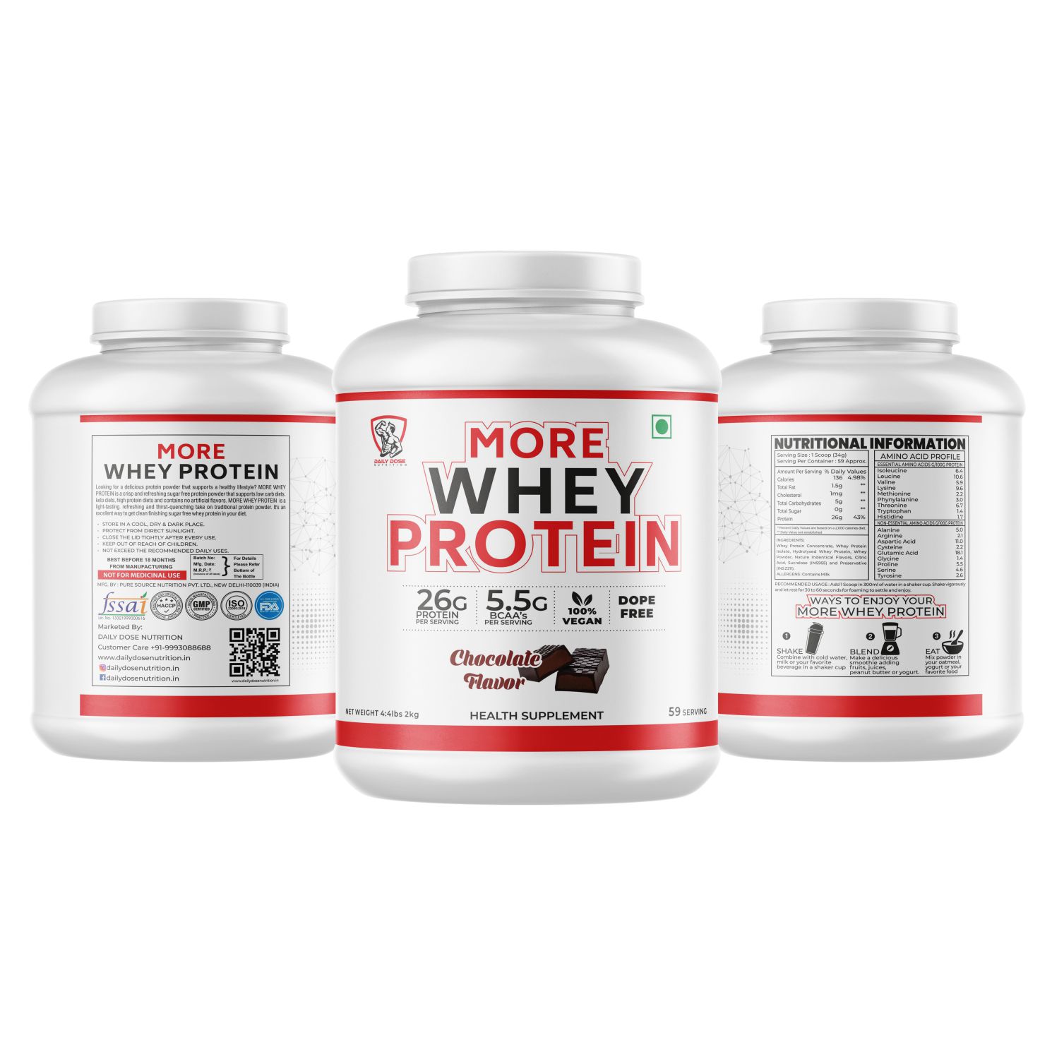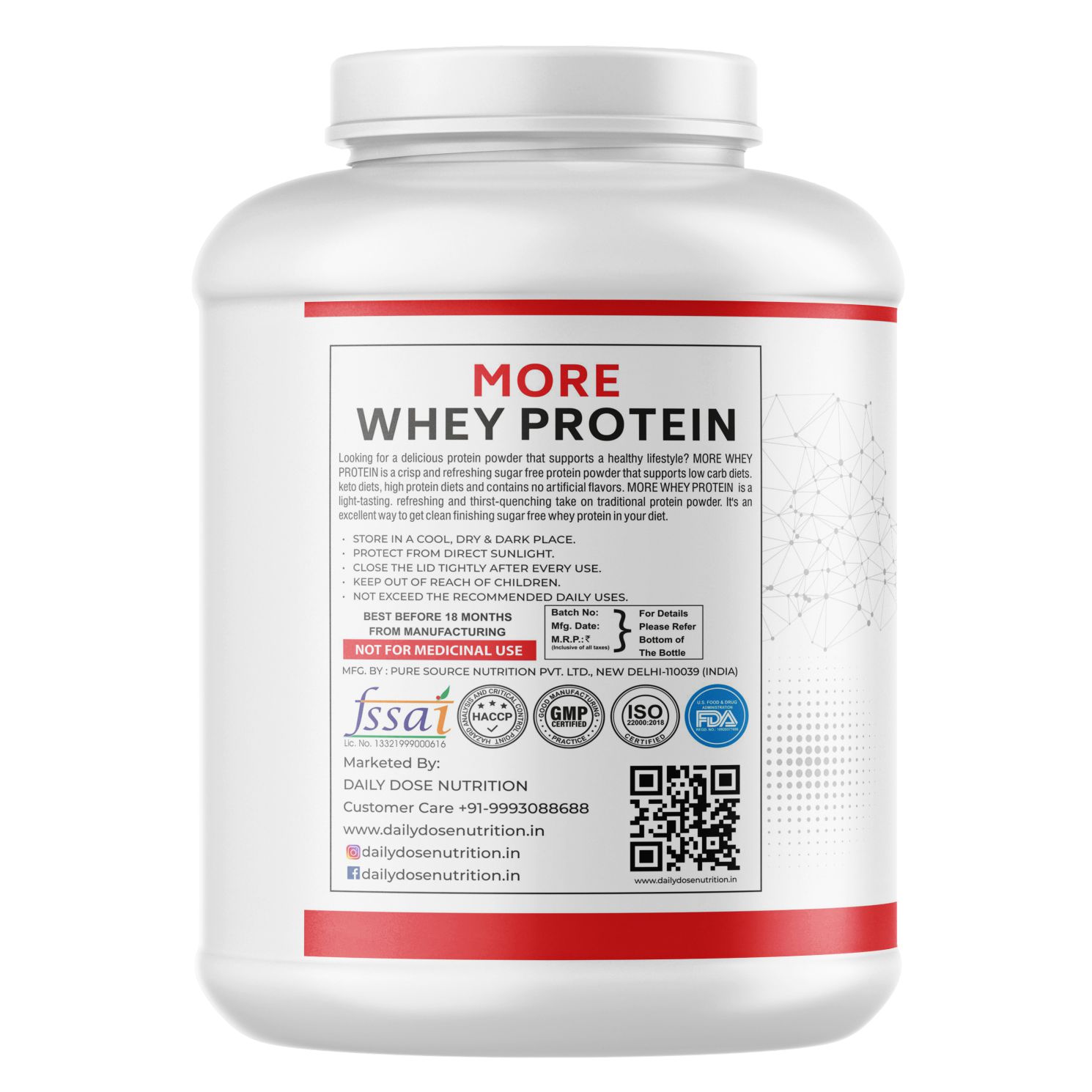 - PROTEIN POWDER for MUSCLE GAIN –More Whey supports protein synthesis by delivering incredibly high doses of BCAAs, glutamine and essential amino acids (EAAs)