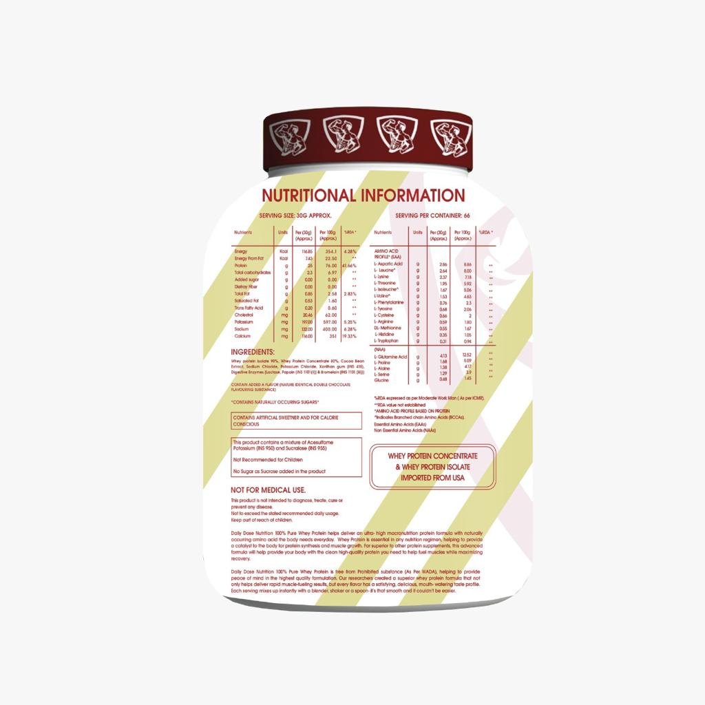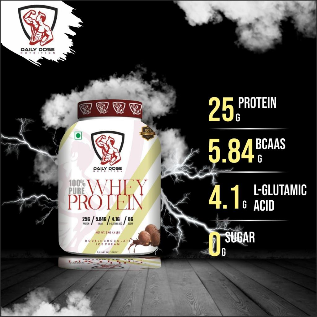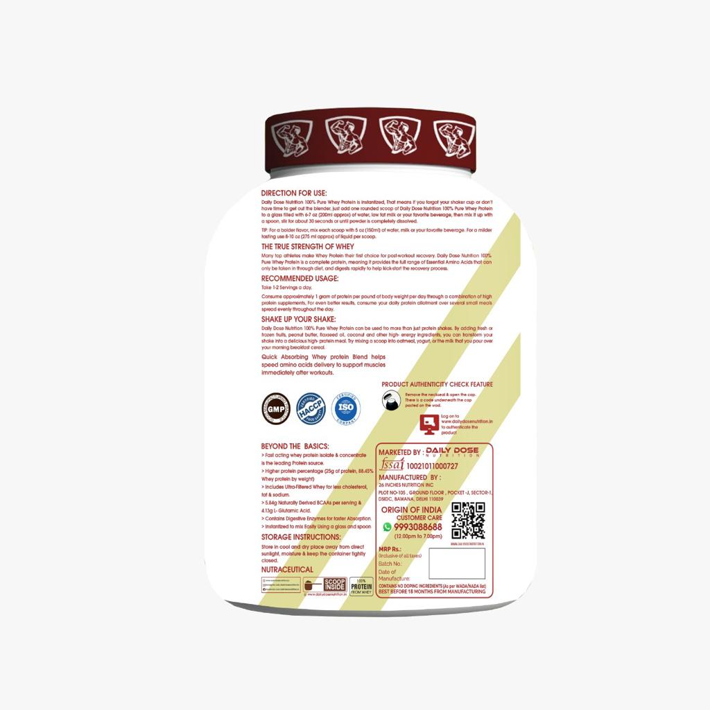 - DAILY DOSE NUTRITION WHEY PROTEIN is 100% Imported Whey Protein Isolate supplement powder and delivers 25g of protein, 4.84g BCAA & 4.1g L-Glutamine per serving