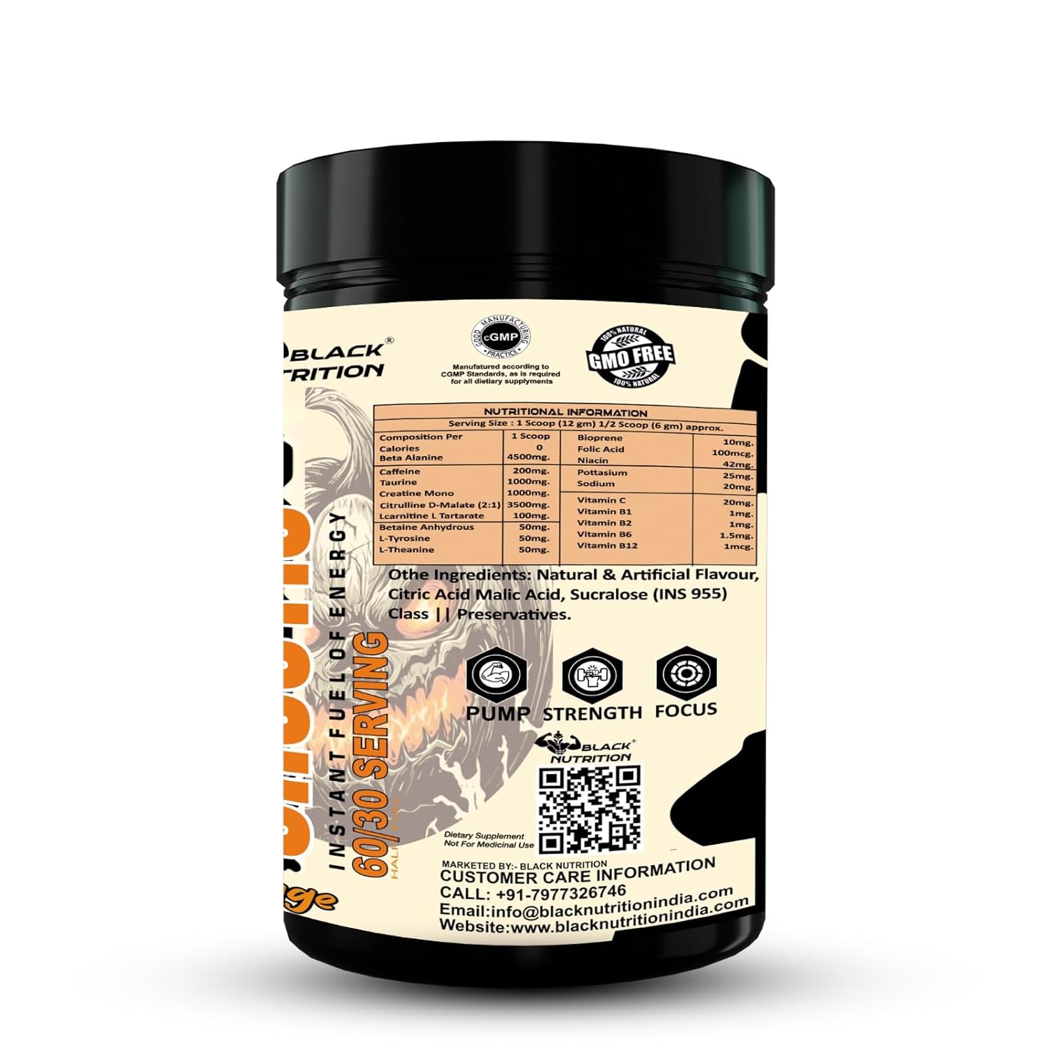 The advanced formula combines 200mg caffeine for fast-acting energy, citrulline malate for superior pumps and improved blood flow, beta alanine and creatine for strength and endurance, and focus-enhancing amino acids for mental clarity and motivation. This balanced blend supports intense workouts without compromising control or performance.