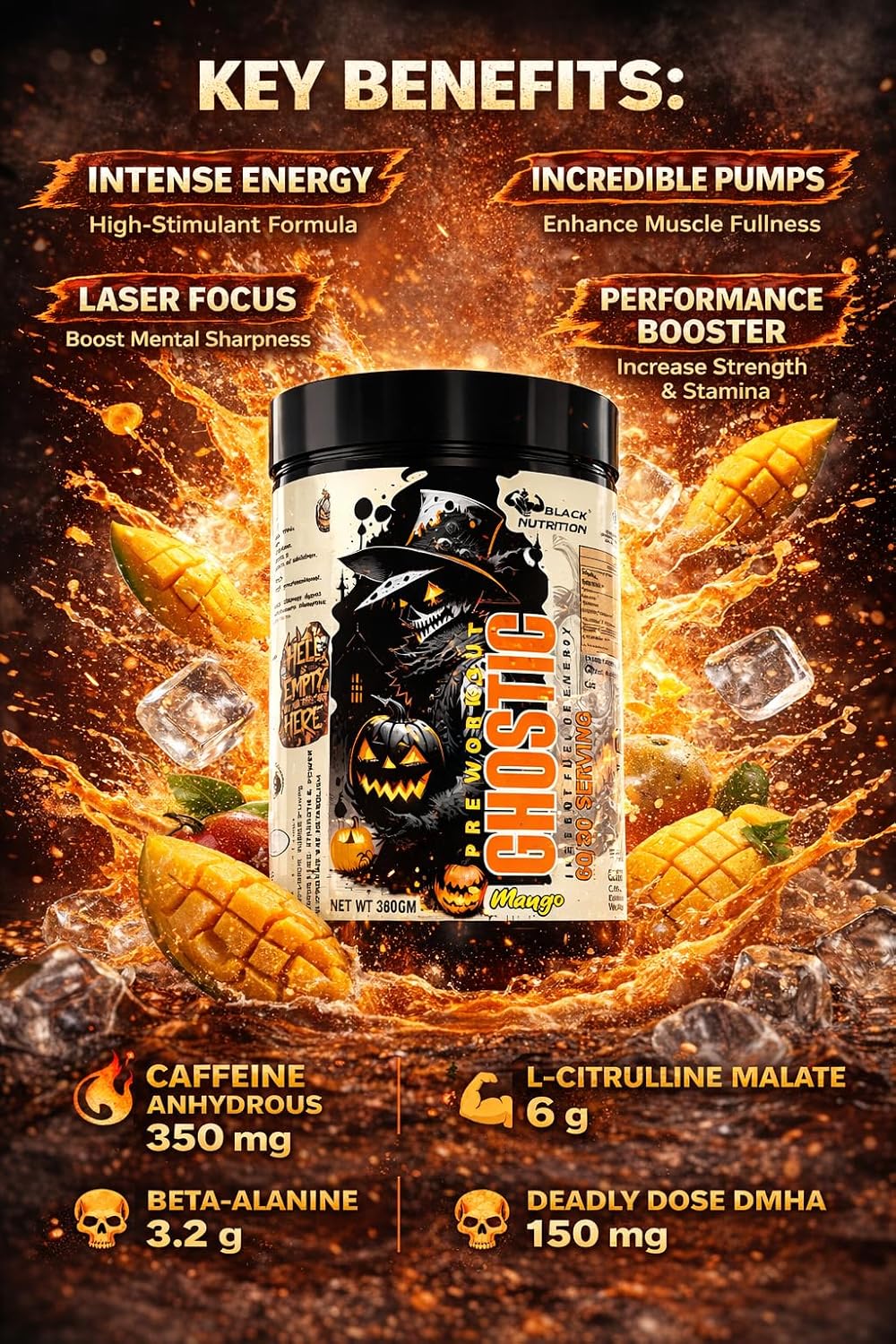 GHOSTIC by Black Nutrition is not made for casual workouts. It is engineered for athletes, lifters, and high-intensity performers who demand raw power, extreme energy, and complete mental domination inside the gym.