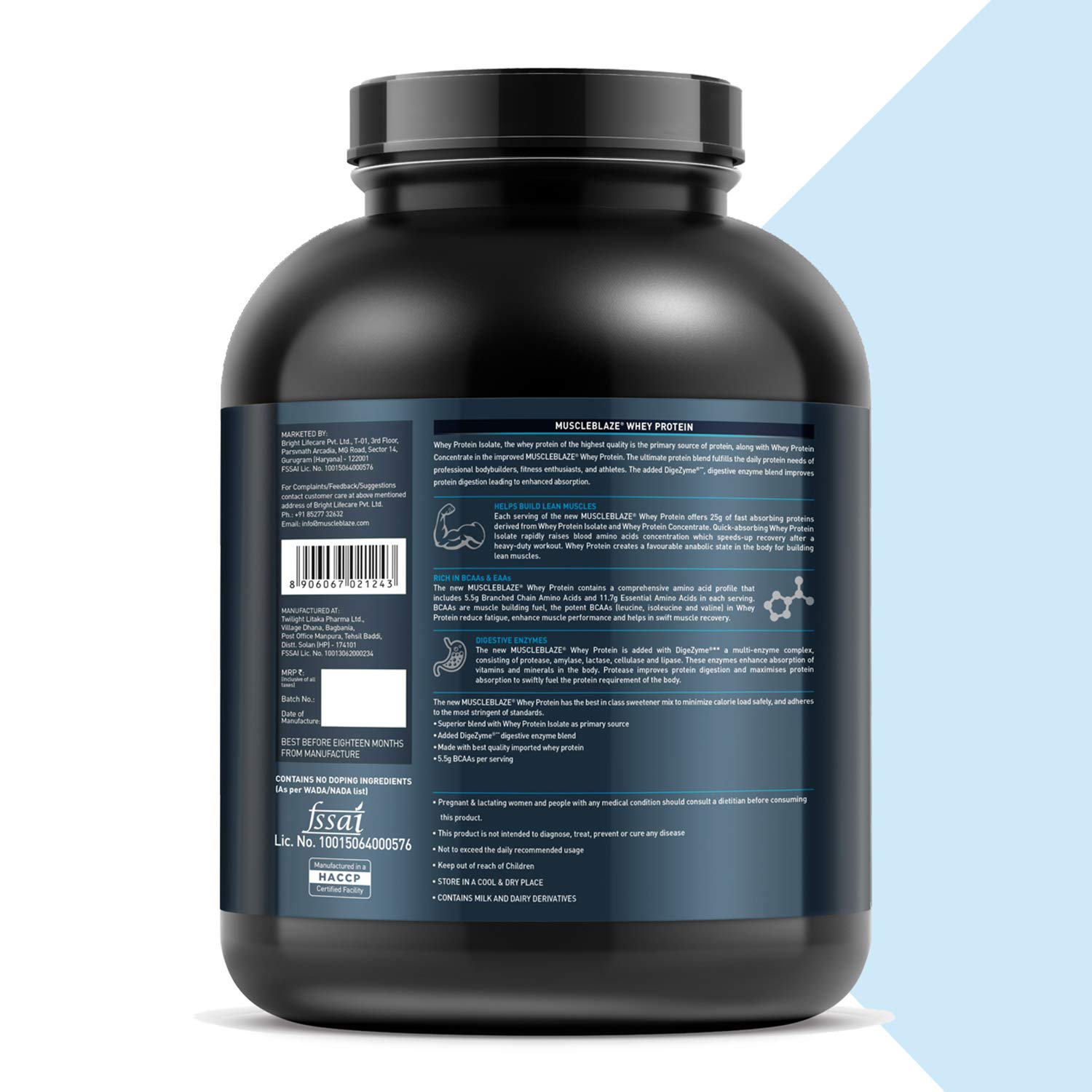 • INTERNATIONAL GRADE WHEY: MuscleBlaze Whey Protein is made using international standard whey imported from the United States of America to help you with superior muscle gain and rapid recovery