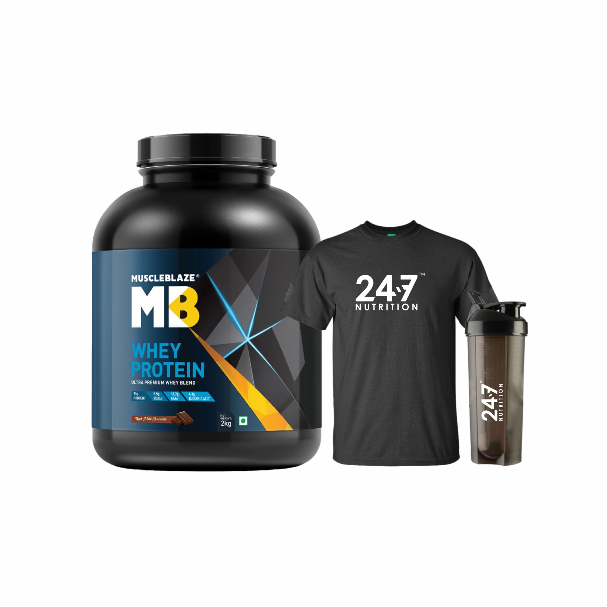 MuscleBlaze Whey Protein 2KG + Shaker + T-Shirt